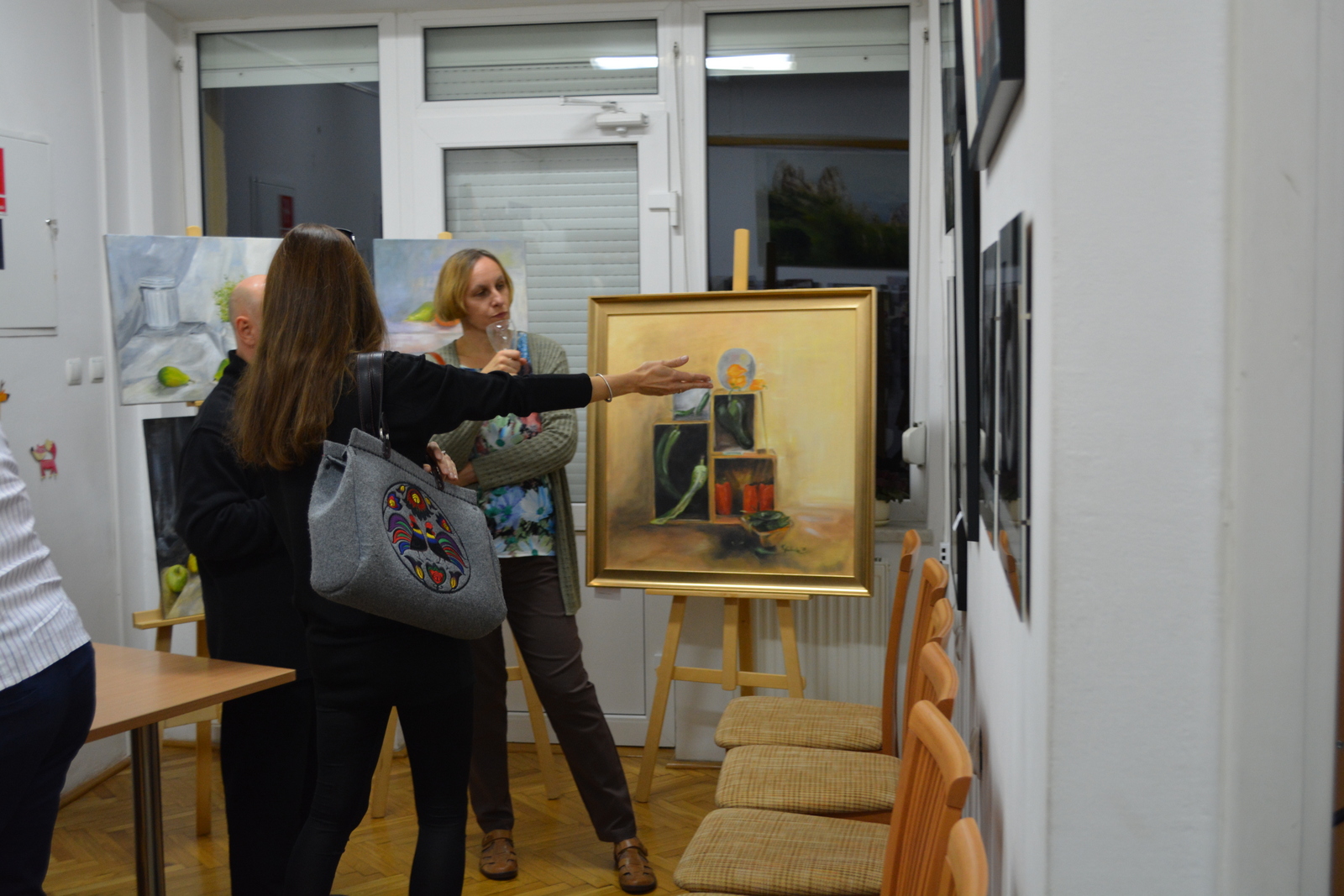 Okazją do rozmów – również z aktorami był czas po spektaklu. Tego dnia odbył się również wernisaż wystawy komorowskiej artystki - Katarzyny Wasilewskiej. Obrazy pod wspólnym tytułem METAMORFOZY doskonale wpisały się w klimat przedstawienia. Ta malarska opowieść o pasji, poszukiwaniu, radości, zmaganiach i tęsknocie pomogła zebranym gościom przedłużyć wzruszenia związane ze wspomnieniami, dzieciństwem, zapachem zerwanych jabłek w sadzie, dźwiękiem domu, a także wspomnieniami ukochanych zwierzaków.