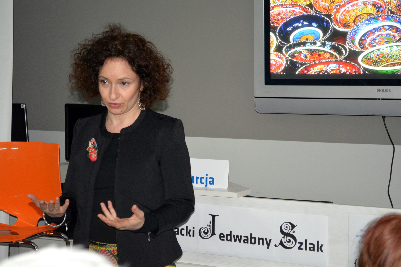 Pani Agnieszka rozpoczęła spotkanie opowiadając gościom jeden z mitów o tym jak powstał świat według Turków. Przeplatając swoją opowieść fragmentami pieśni i poezji w języku tureckim zaprosiła czytelników do swojej Turcji widzianej oczami filologa i wykładowcy, ale również oczami Polki pochodzenia tureckiego. Opowiedziała o tańcu derwiszy, przyjęciu przez Turków islamu, pięknych wierszach o miłości i oczywiście o serialu "Wspaniałe stulecie". Mówiła również o tym, że popularność serialu znacznie wpłynęła na wzrost zainteresowania Polaków Turcją - historią, obyczajami, tradycjami, publikacjami....i oczywiście filmami.