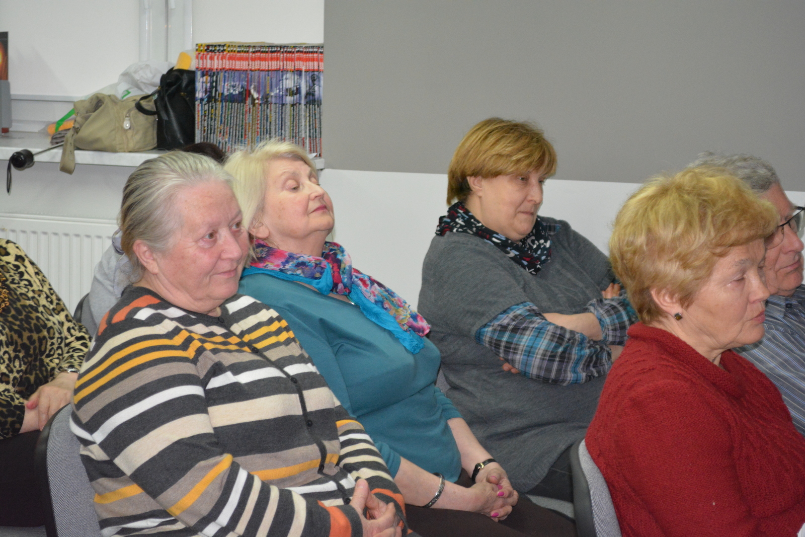 Z powodu wciąż trwającego remontu Biblioteki, spotkanie odbyło się w pokoju Pani Marii i…. w holu biblioteki, a za miejsce do siedzenia oprócz krzeseł posłużyły nam nawet schody. Wszystkim przybyłym na spotkanie jesteśmy niezwykle wdzięczni za wyrozumiałość.