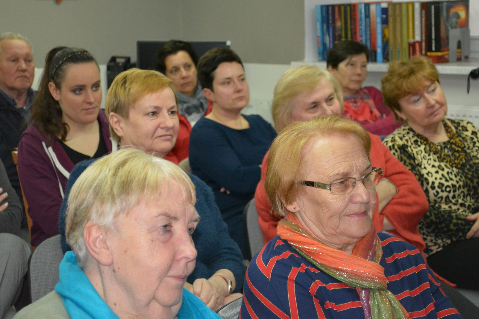 Spotkanie przyciągnęło wielu czytelników biblioteki oraz okolicznych mieszkańców. Nie zabrakło również gości specjalnych - na prelekcji pojawili się dziadkowie Pana Adama.